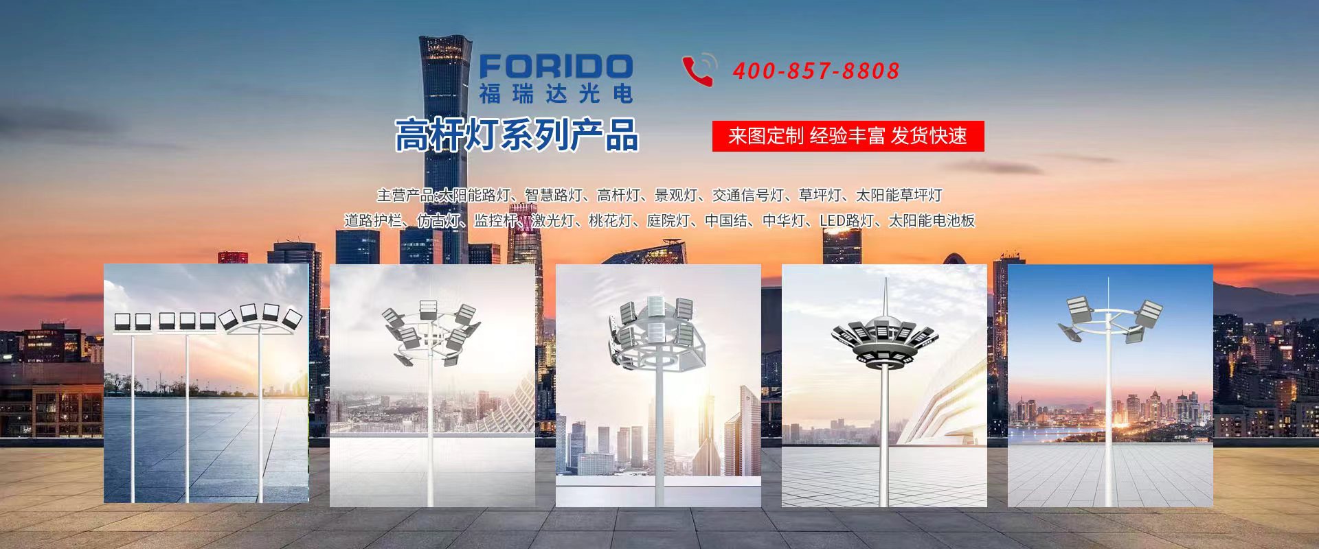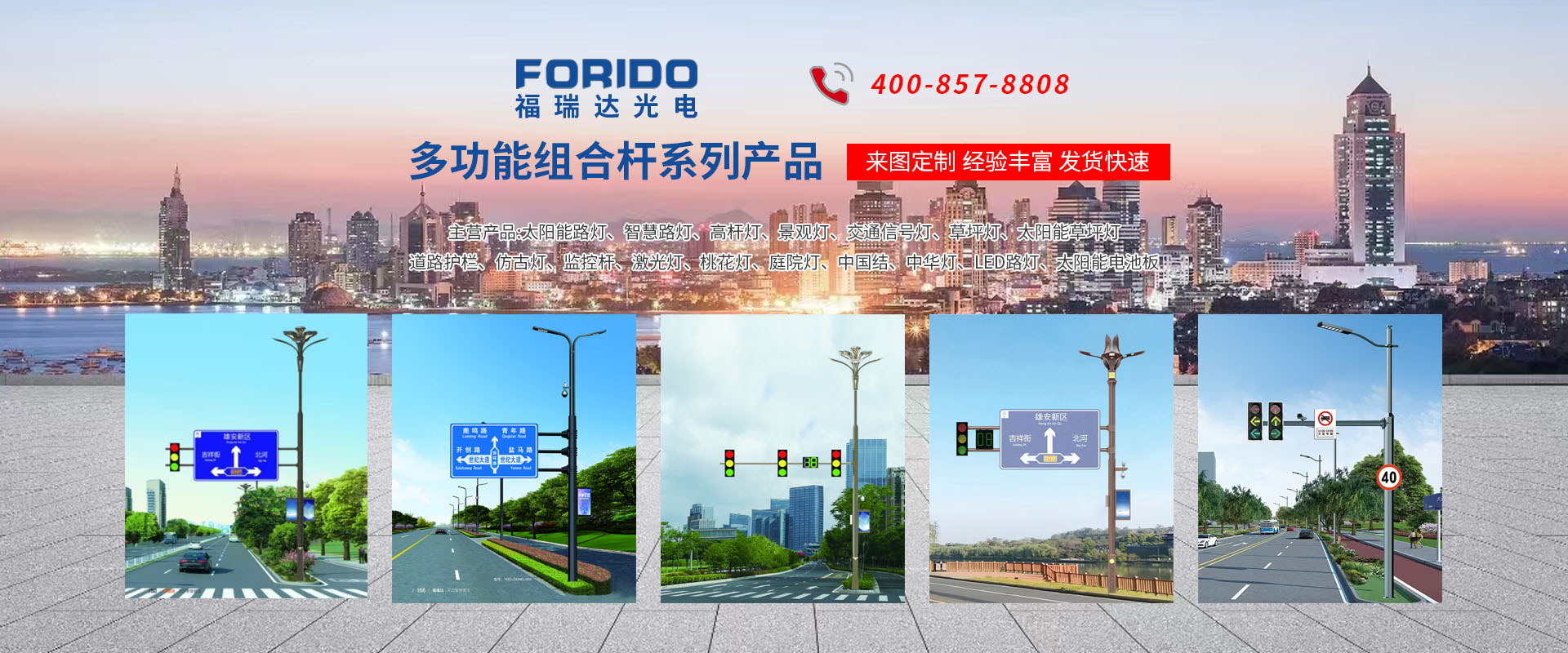 揚州福瑞達光電科技有限公司位于淮左名都歷史文化名城、中國路燈制造基地揚州市北郊菱塘工業園,公司占地面積76000平方米,注冊資金10518萬元,擁有高級技術嫻熟的員工280多人,擁有大型折彎機、激光切割、數控注塑機、壓鑄機、自動埋弧焊、氣焊、彩色粉末靜電噴塑等大型自動化設備,我公司是一家集設計、研發(fā)、生產、銷售、施工安裝服務為一體的戶外交通照明產品制造商,主要生產智慧路燈、太陽能路燈、LED路燈、高桿燈、景觀燈、交通信號燈、交通標志牌、通信鐵塔、路跨鋼結構、公交站臺、太陽能光伏組件、景點亮化、樓宇亮化工程的設計施工等。公司秉承開拓創(chuàng)新、銳意進取、精誠服務的企業精神,堅持以“誠信為本、技術為先、服務是金”的合作理念,我們憑借先進的制造工藝、優(yōu)質的產品質量、合理的市場價格和完善的售后服務贏得了廣闊的市場和客戶的信賴?! ∥夜疽淹ㄟ^ISO9001質量體系認證、ISO14001環(huán)境管理體認證,CQC產品認證,中國節(jié)能產品認證,通過“CCC”強制性產品認證,具有市政總承包,照明,交安,設計等資質···